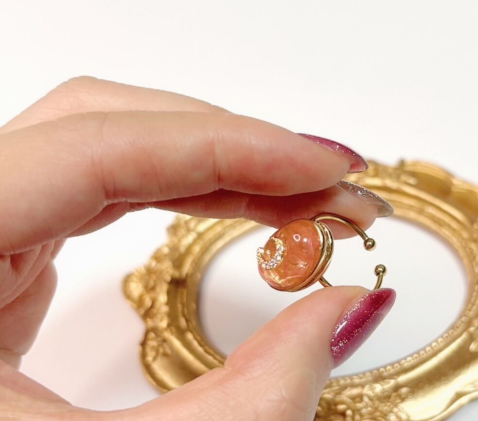 心を穏やかにし、内なる魅力を引き出すとされているストロベリークォーツに、煌めく月を施した美しいリング。