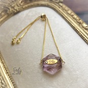 透明感あふれる六芒星のアメトリンを、繊細なゴールドチェーンで仕立てたブレスレット。アメジストとシトリン、2つのエネルギーをひとつに宿す希少な天然石アメトリンは、「調和」「直感」「創造性」の象徴とされ、心と体のバランスを整えると言われています。