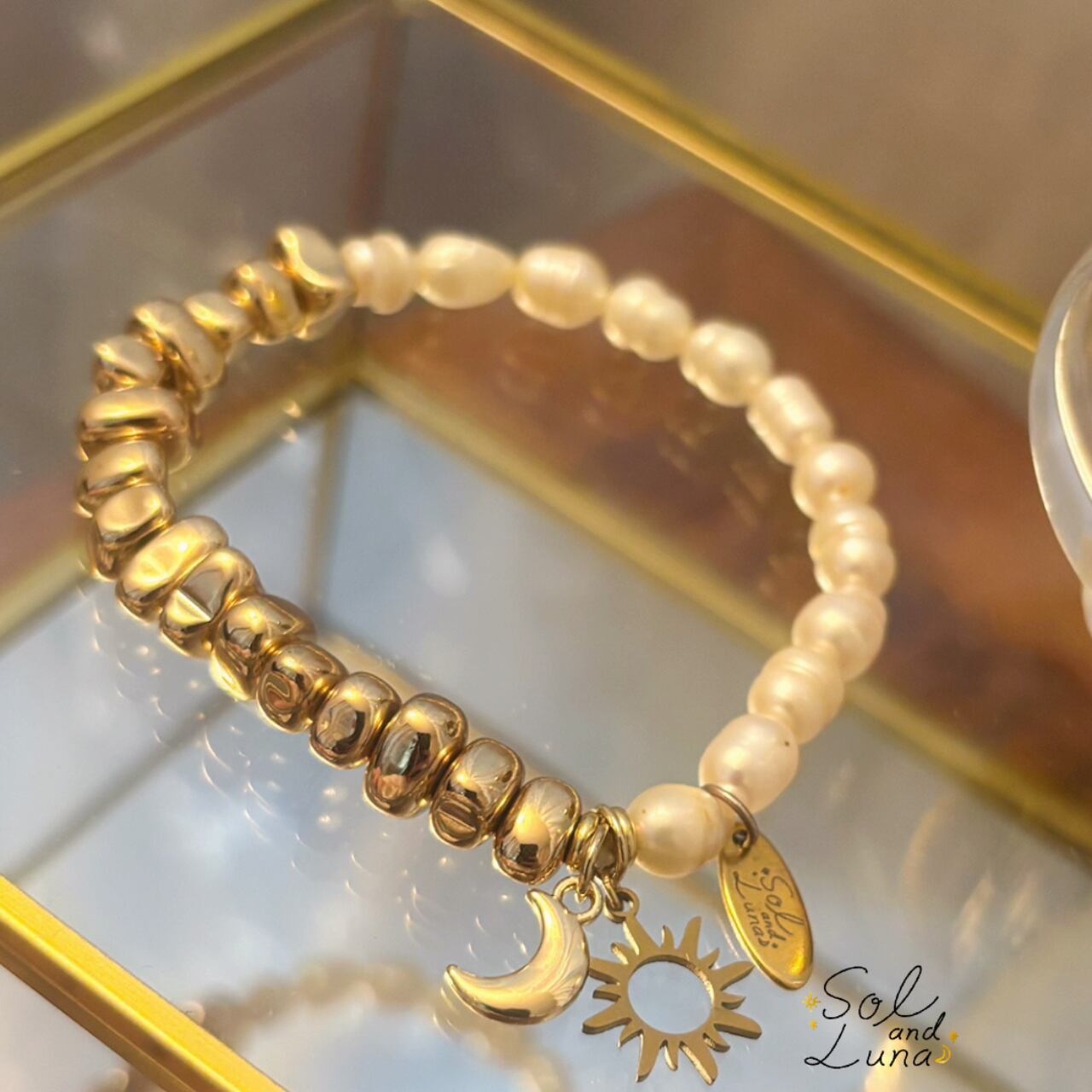 揺れる“太陽”と“月”のチャームには、「光と陰」「内なる自分と外の世界」を調和させる願いを込めて。